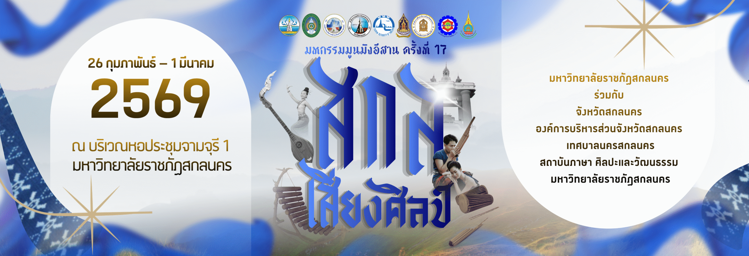 ณ บริเวณหอประชุมจามจุรี 1 มหาวิทยาลัยราชภัฏสกลนคร Published กุมภาพันธ์ 11, 2026 at 2560 × 875 in ณ บริเวณหอประชุมจามจุรี 1 มหาวิทยาลัยราชภัฏสกลนคร ← Previous Next →